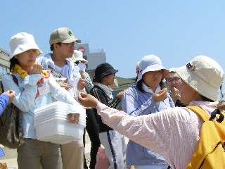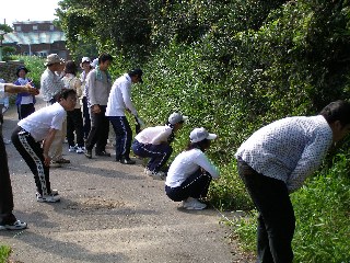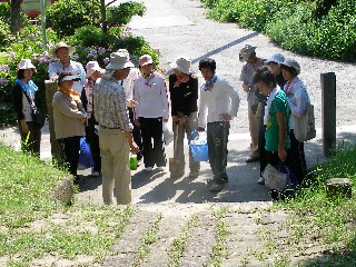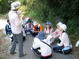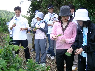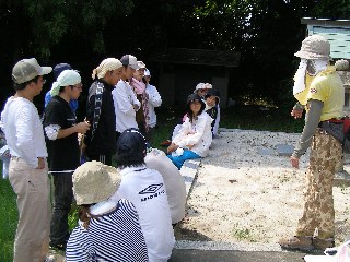 【中】こちらも、ネイチャーゲーム「カモフラージュ」のルール説明をしています。