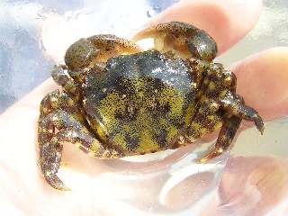 【左】オオギガニ仲間のスベスベオウギガニです。毒があるので食べないでください。