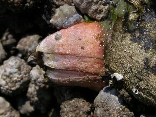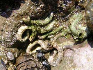 【中】オオヘビガイ。カキみたいに岩にセメント質で付いています。