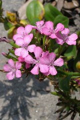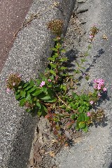【左】ハマナデシコ。(右)道路のアスファルトの間から出ている。