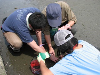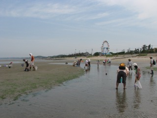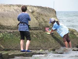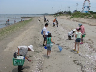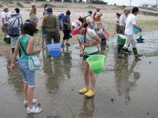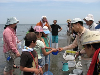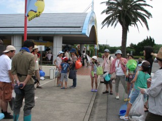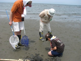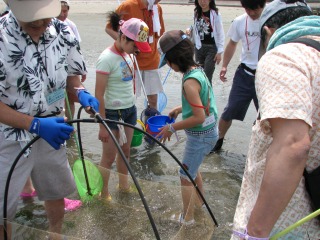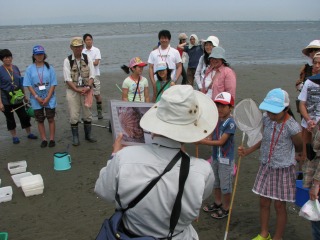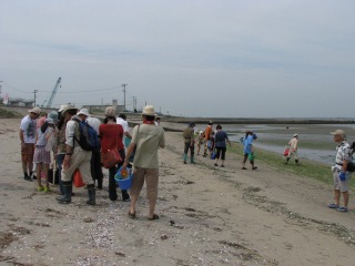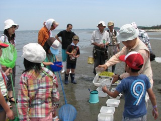 毎年恒例の講座で、家族そろって参加していただき、身近な自然である海辺に出て、海辺の生き物を観察することにより自然の大切さを知り、自然を守っていく心を育てるために実施されています。単に生き物の名前を知るだけではなく生き物に触れ親しみながらその生活を知ることです。