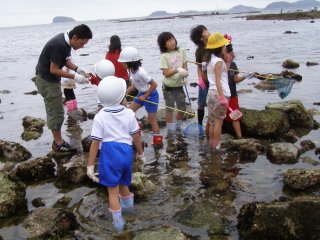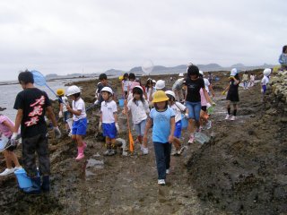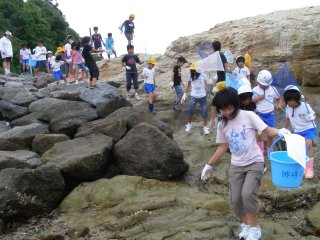 昨年に引き続き、海辺の生き物に親しみ、生き物について学び、郷土のすばらしい自然を知って自然を大切にすることを目的に実施されました。