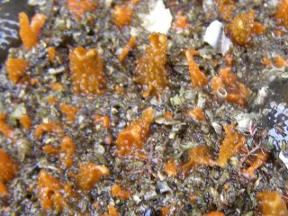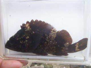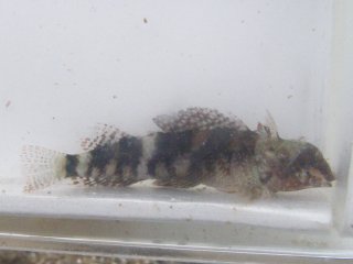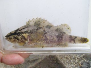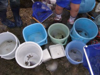 【左】 早速タモに魚が入りました。 【右】しおだまりは水族館みたい。