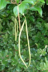 【中】テイカカズラの花とサヤ状の袋果