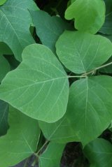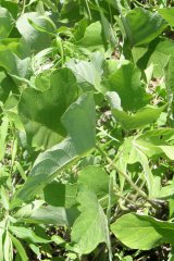 【右】クズの日向の葉は太陽に対し鋭角になり、日陰の葉は鈍角になる。
