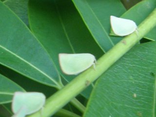 【右】セミに仲間のアオバハゴロモ。ハゴロモは天女の衣類。