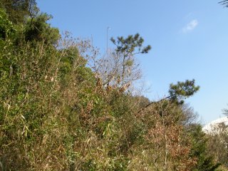 【中】体育館を作ったときに削った土手に自然生えでマツが生えました。