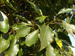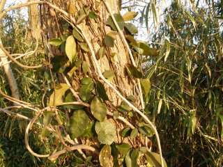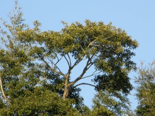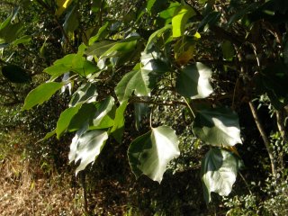 【左】センダンのウロに生えたクロガネモチとタブノキ