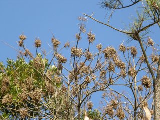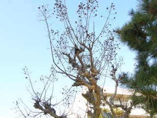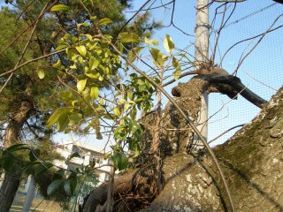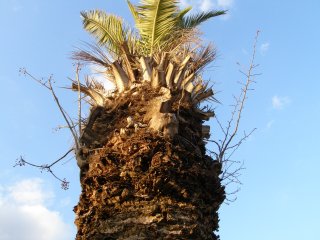 【右】ワシントンヤシにサクラ(右)、ハゼノキ(左)が着生しています。