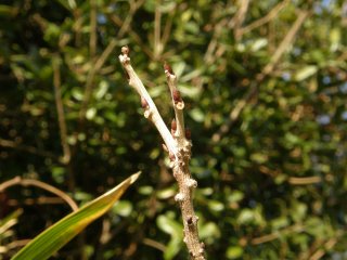【右】左、今年の秋実ります。右、昨年の秋実り種子が落ちた後です。(花が咲いて種が出来るまでに足掛け2年かかります)