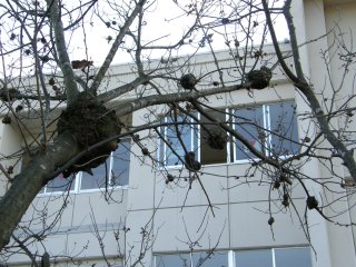 【左】コナラ。(この木は未だ落葉していませんでした)