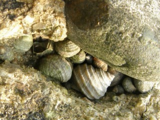 ヒザラガイ、イシダタミ、ツメタガイ、タマキビガイ、アラムシロガイ、イボニシ、カリガネエガイ、シオフキ、アサリ、カガミガイ、マテガイ、カラマツガイ、