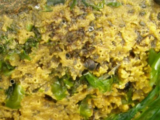 【左】タマシキゴカイ(クロムシ)の卵塊