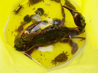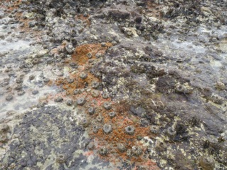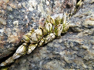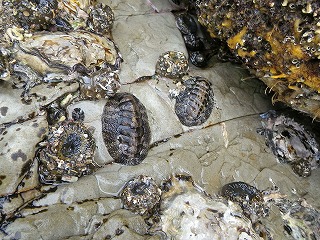 イワガニ、イシガニ、ヒライソガニ、イワフジツボ、クロフジツボ、カメノテ、フナムシ、ヨツハモガニ(小)