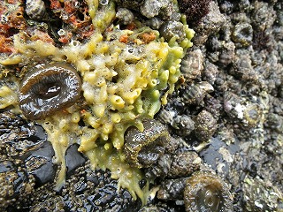 ヒザラガイ、スガイ、イボニシ、オオヘビガイ、マツバガイ、キクノハナガイ、マガキ、マダラウミウシ、クロシタナシウミウシ