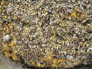 【左】クロフジツボ帯、フナムシも岩陰に隠れ棲んでいます。