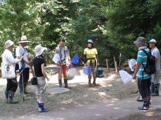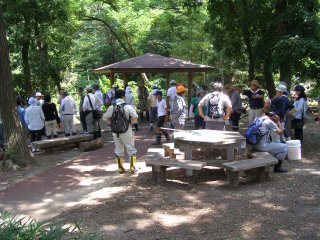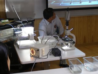 【右】野外実習の説明。