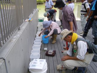 【中】採集した生き物の仕分け。