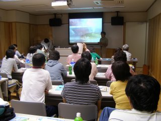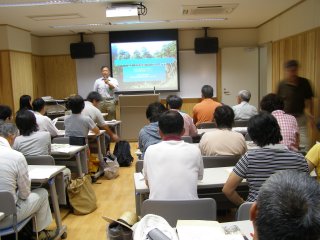 【右】「森の大切さ」の講演。