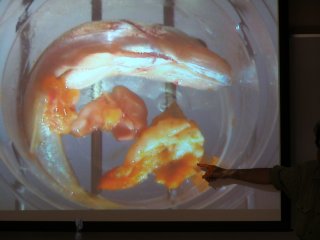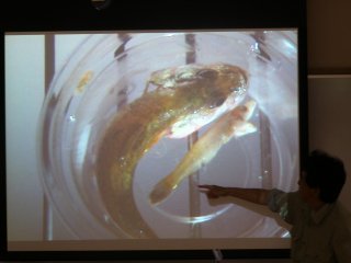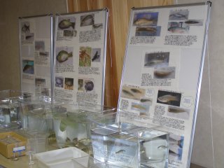 【右】魚の展示と解説。