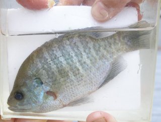 【中】特定外来生物になっているブルーギル。