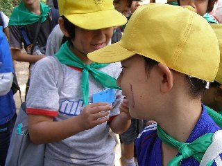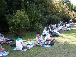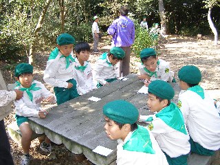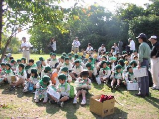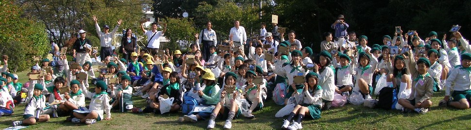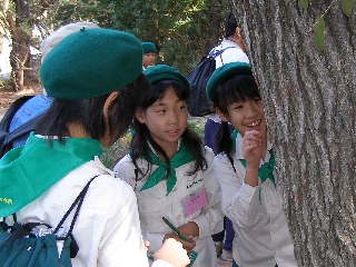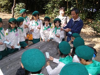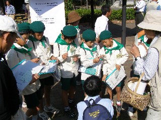 【左】フイルドビンゴというネイチャーゲームに取り組んでいます。