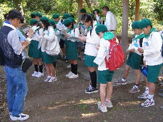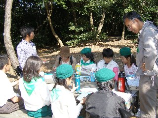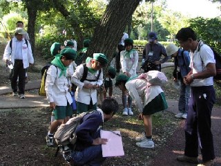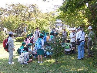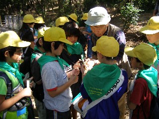 【中】見つけた生き物を知多自然観察会のリーダーに聞いています。