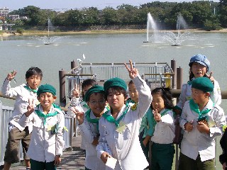 【左】池の中のカメさん、鳥さんを眺めながら移動しています。