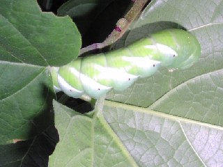 【中】クサギを食べるシモフリスズメの幼虫がいました。