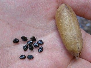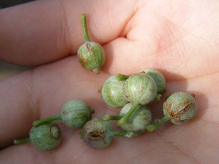 【左】ヌルデの果実の試食をしました。「酸っぱかったです」