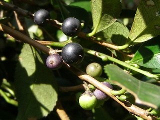 【左】ヒサカキの果実です。緑→白→紫→黒に変わります。