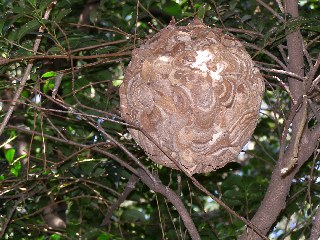 【左】コガタスズメバチの巣。ハチは留守みたいでした。