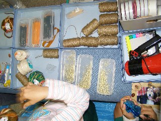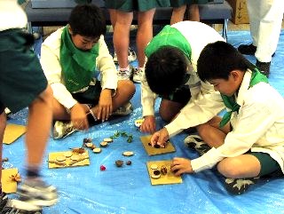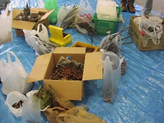 【右】皆さんが使う材料を知多自然観察会の会員が集めました。