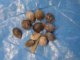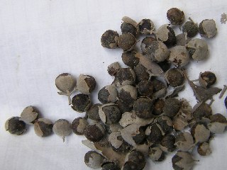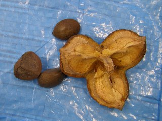 【右】カクレミノの実を鉄砲の玉にしました。白い煙が出ました。