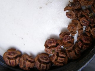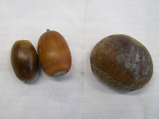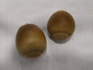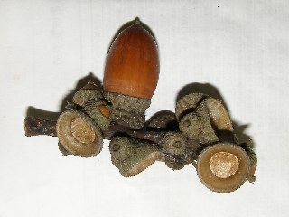 【左】ドングリの殻斗(帽子)で作ったイモムシ。