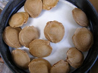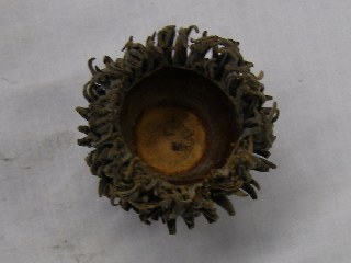 【中】枯れ草のカンムリができました。ぼくはオオタニシを池の縁で見つけました。