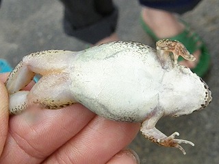 【右】ヌマガエルの腹は白いです。