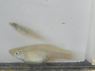 【左】カダヤシ(外来)、上が♂、下が♀