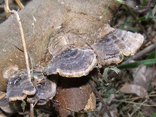 【右】カワラタケです。瓦のように重なって生える所からの名前です。癌細胞の増殖を抑えるそうです。