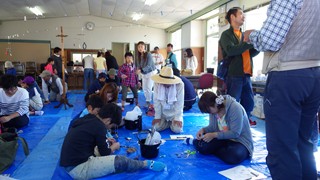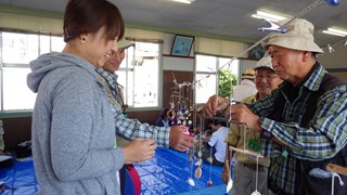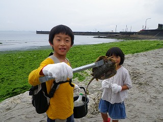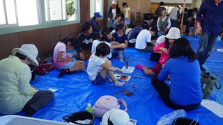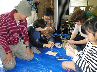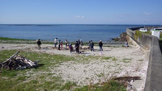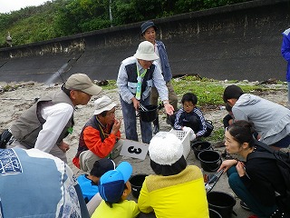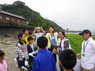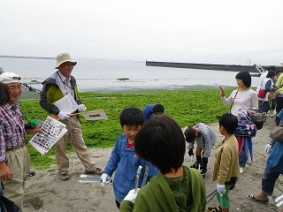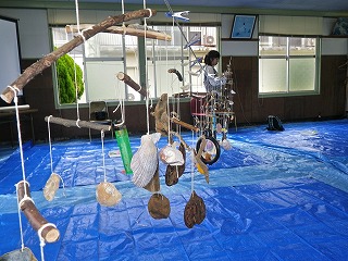 (1)一般受付 9:00 〜 9:20 受付担当: 女性指導員+平田 ・セアカゴケグモの紹介、展示を見る (生きたセアカゴケグモ5匹を観察ケースに入れて展示) ・集会室に北の海、南の海の“お宝漂着物”を展示 (2)開会行事 9:25 〜 9:35 進 行: 森田琢 ・挨 拶 主催者(知多県民センター環境保全課) ・挨 拶 観察会代表(南川) ・日程等 日程、配付物説明、安全面、 解散後のアンケート他などの連絡(榊原正) ※安全対策…クイズ帳の問1〜問4を利用 (3)モビールづくり (室内で班ごとに車座になって作成) ・約6畳(2.5m×3.5m)のブルーシートに車座 ・材料は周囲に並べておく(広げておく) ・作り方を説明 ・原則、二段式モビール ・瞬間接着剤は指導員が一つ一つ付ける (4)観 察 会 (浜辺で班別で漂着物の観察) ※ビンゴを利用→できれば幾つかクイズも ・遠くの浜辺で観察……1班,2班,3班 ・手前の浜辺で 〃 ……4班 ※どんな漂着物があるのかな… ※幾つかの漂着物を→どうしてそこにあるのかな… ※班ごと、“分かち合い”をして終了 (5)閉会行事 11:40 〜 11:50 ・挨 拶 主催者(知多県民センター環境保全課) ・挨 拶 観察会代表(南川) ・解 散 諸注意(森田琢) ・アンケート記入、記入後解散 (6)指導員反省会 12:00 〜 12:20 |
