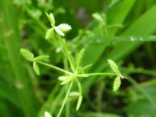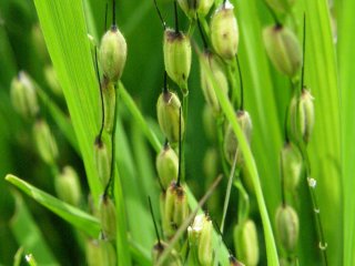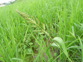 【中】左、イヌビエ。右、イネ(葉舌に毛)
