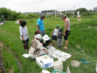 今回、田んぼの生き物観察を行いました。参加された保護者のみなさんは熱心に取り組まれ子供たちも楽しい観察が出来ました。夏は暑いに決まっています。そんな中、暑さ対策をし、積極的に野外に出て自然に親しむことが大切です。親たちが率先して野外に出なくては子供たちが自然に触れる機会をなくしてしまいます。知多自然観察会はいつでも楽しい機会を待っています。(記・降幡)