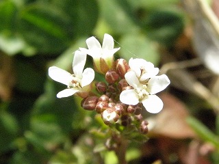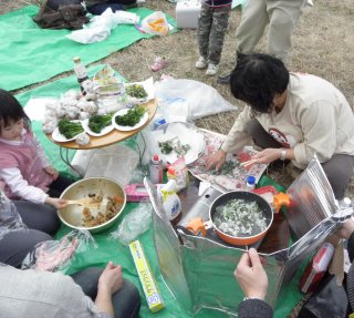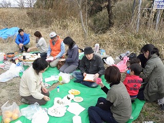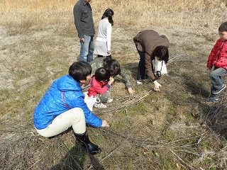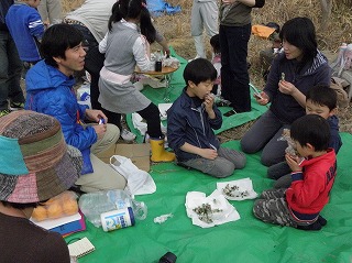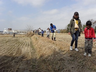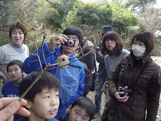 なごや環境大学平成22年度 B−20 「かかし君が安心して暮らせる所は、どんなところだろう」の講座の御手伝いをしました。空き田んぼを利用して、自然の大切さと次世代に残せる持続可能な自然環境とは何か考えます。普段、何気ない空気や水、土など食とのつながりを子供たちと調べ、遊び、作るなどの活動をして何が大切かを皆で体感する目的だそうです。田んぼの生き物観察を行いました。暦で春とは言っても寒風が吹き、寒い中、時々暖かい日がおとずれる季節です。春を告げるタネツケバナなどの野草たちは可憐な花をつけていました。また、成虫で冬越しをしている虫さんたちを見ることができました。水田とその周りに食べられる野草がたくさん残っているので採集して野草のテンプラを味わいました。(記・降幡)