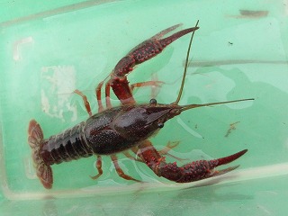【左】オオカミキリの卵 【中】ハシリグモの仲間 【右】アメリカザリガニ(外来)