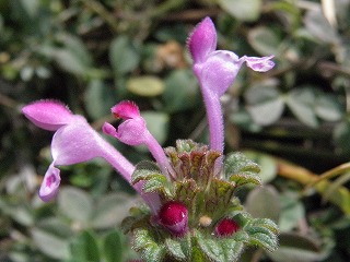 【左】オオイヌノフグリ 【中】ホトケノザ、春の七草とは別物 【右】ツルニチニチソウ、有害の外来野草
