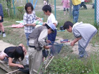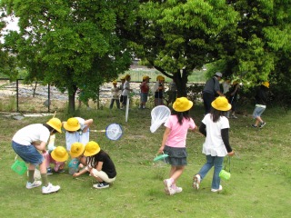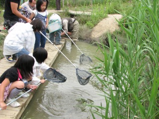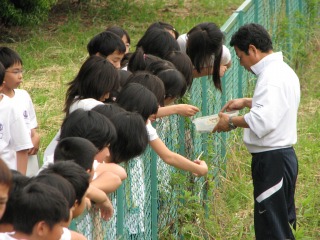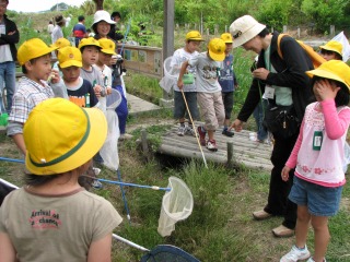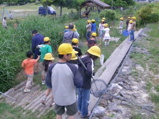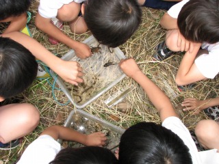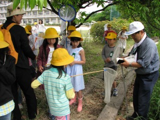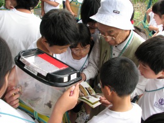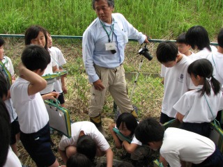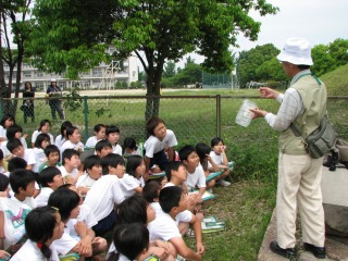 校内に設置されたビオトープを中心に生き物を観察して自然の大切さを学ぶために次のような内容で行事が行われました。
