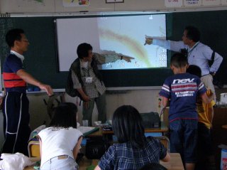 【中】エラミミズを顕微鏡投影装置で見ました。
