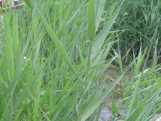 【左】水路のカエルの種類を調べています。 【右】確認した昆虫をメモしましょう。