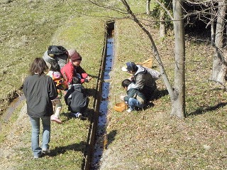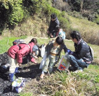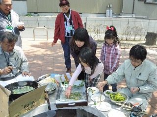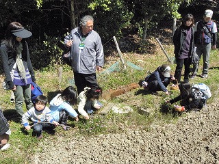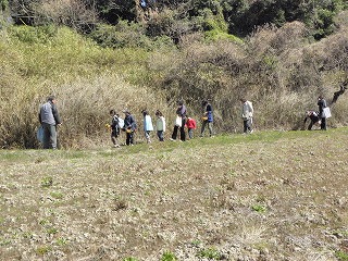 前日までは冷たい風が吹き真冬みたいな気候でした。蓋を開けると好天に恵まれ、春の自然を味わう絶好の日となりました。この季節は、冬から春に変わる時期で植物も動物も大きく変化する季節です。北国から越冬にやってきたツグミ、ジョウビタキ、カモの仲間が帰郷の準備をしています。少しずつ暖かくなり植物も花を咲かせ若葉を出します。その若葉を虫さんがいただき、虫さんを求めて南の国に行っていたツバメやタカの仲間が子育てにやってきます。 そんな中、池の下にある水田の周りを散策して食べられる野草を観察し、試食をしました。