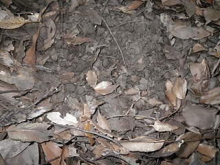 【左】厚さ数センチに堆積した落ち葉の林床、土壌は乾燥していましたが細粒化していました。   【中】オカダンゴムシ   【右】アブラゼミ(死骸)